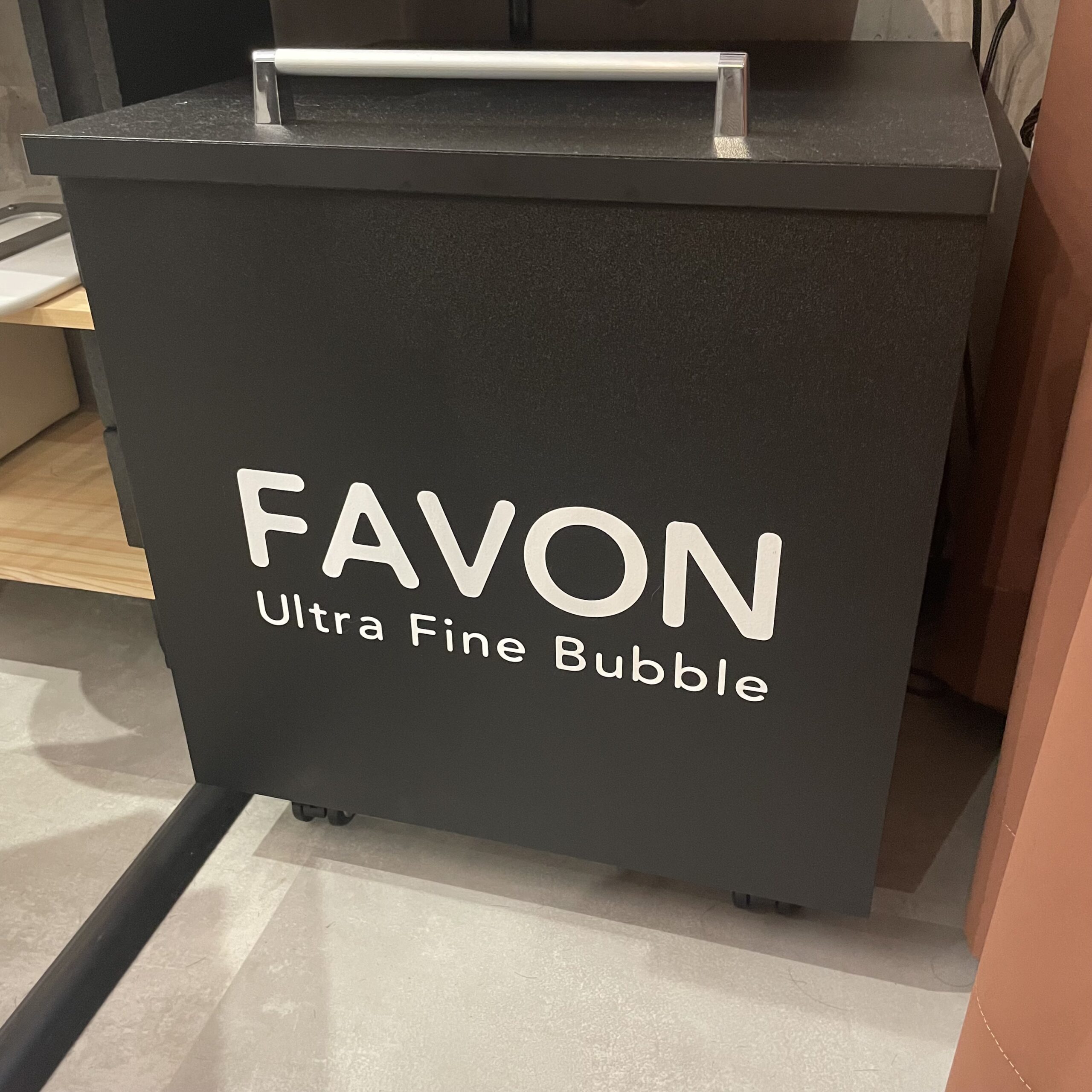 このFABONを機械からシャンプーヘッドを通してお湯と一緒に出しています。